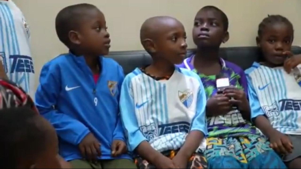 El doctor César Ramírez, a través de su Fundación Bisturí Solidario, intervine en Camerún a 194 personas y regala a los niños camisetas del Málaga C.F.