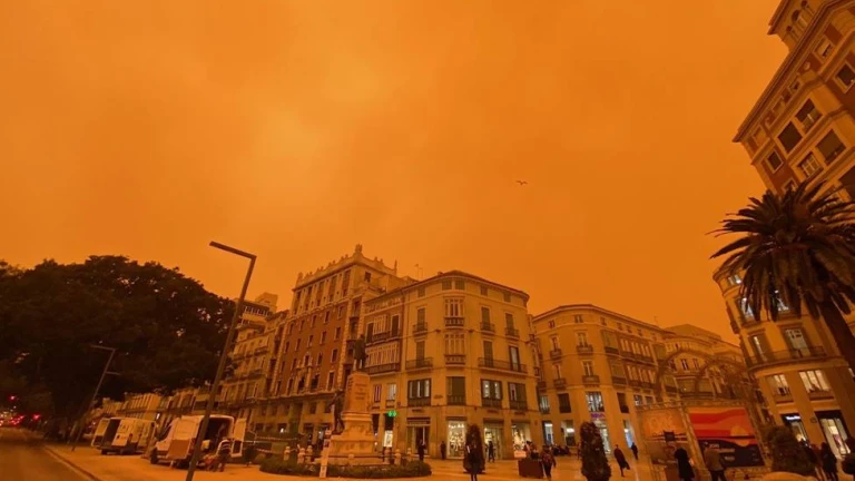 En Málaga se va a poner en marcha un plan especial de baldeo de las calles para eliminar el rastro del barro, que ha teñido de marrón aceras, fachadas, toda la ciudad cubierta por esa lluvia convertida en barro por una calima que se espera que poco a poco vaya desapareciendo.