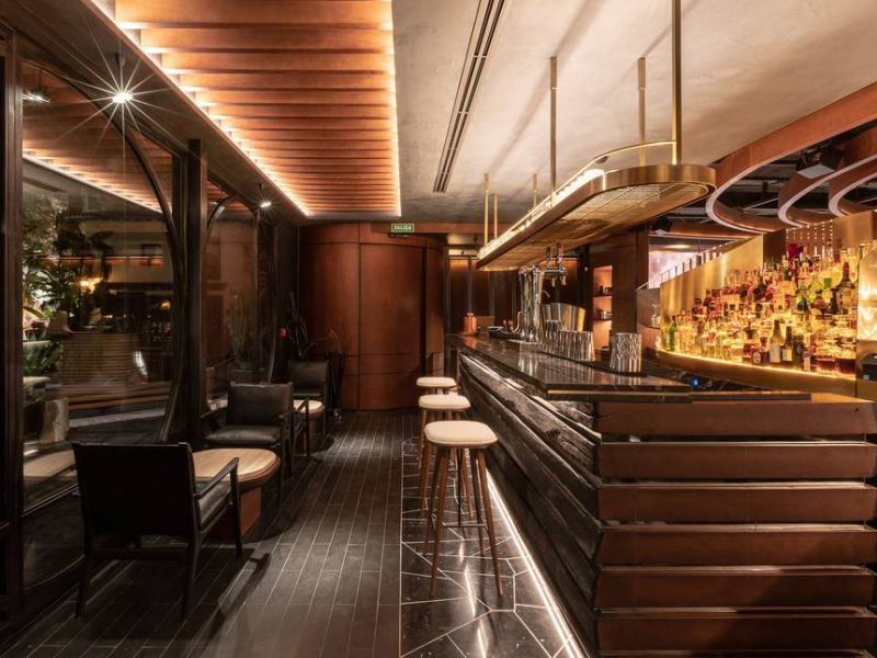Es la segunda vez que el estudio trabaja con el grupo del aclamado chef marbellí y los interiores de “Leña” se inspiran directamente en “el estilo de cocina robusto utilizado en el restaurante y la amplia oferta gastronómica”, dando como resultado una abundancia de formas orgánicas que sustentan una paleta de colores otoñales profundos y una iluminación de lo más temperamental.