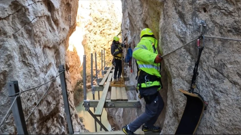 El Caminito del Rey recupera la normalidad a partir de este viernes, cuando los visitantes podrán volver a realizar el recorrido habitual desde el acceso norte (Ardales) una vez que han concluido los trabajos de reparación de los daños provocados por los desprendimientos de rocas que se produjeron el 12 de diciembre.