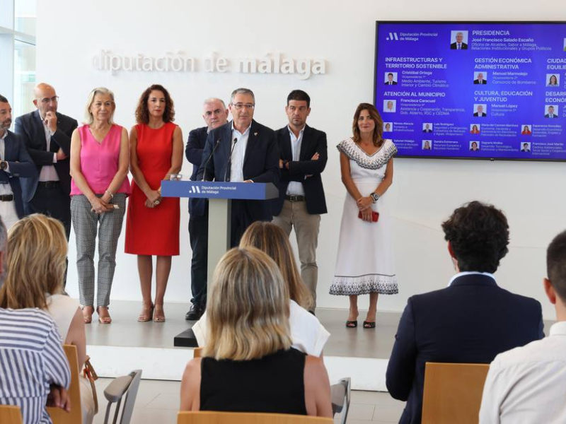 El presidente de la Diputación de Málaga, Francisco Salado, ha presentado este jueves la nueva estructura y composición del gobierno de la provincia, "que debe dar respuesta a los retos, problemas y necesidades de los 103 municipios malagueños en los próximos cuatro años". Salado ha afirmado que los 18 diputados que formarán este gobierno permiten crear una estructura provincial que será más ágil y tendrá mayor coordinación interna y con los ayuntamientos, especialmente con los menores de 20.000 habitantes.