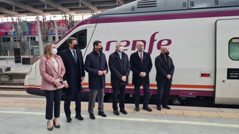 El primer tren procedente de Málaga que conecta de forma directa y por alta velocidad la capital malagueña con Granada, con un tiempo de viaje de 70 minutos y sin la necesidad de realizar transbordos en la estación de Antequera Santa Ana, ha llegado puntual a la ciudad de la Alhambra. El nuevo servicio ha salido de la estación ferroviaria de Málaga María Zambrano a las 9:25 horas y ha entrado a las 10:37 horas en la de Andaluces de Granada.En el trayecto inaugural han viajado el presidente de la Junta de Andalucía, Juanma Moreno; la consejera de Fomento, Marifrán Carazo; el presidente de Renfe, Isaías Táboas; el delegado del Gobierno central en Andalucía, Pedro Fernández, y el alcalde de Málaga, Francisco de la Torre, entre otros.Entre los viajeros, muchos turistas, la mayoría sorprendidos de que estuvieran estrenando esta conexión directa, además de residentes en Granada que han pasado el fin de semana en Málaga visitando a sus familiares, y numerosos periodistas.