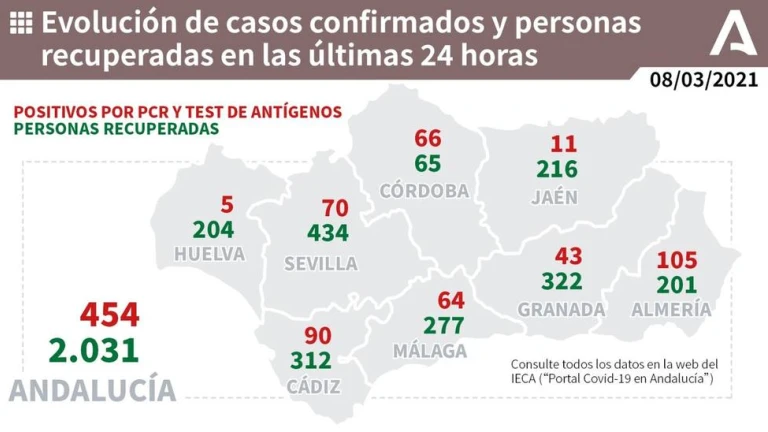 En cuanto a las vacunas administradas en la provincia contra el COVID19, a fecha de 7 de marzo, el total de dosis puestas es de 160.407 (cinco más que el sábado) mientras que 43.879 personas cuentan ya con las dos dosis, según los datos facilitados en esta jornada por la Administración andaluza.