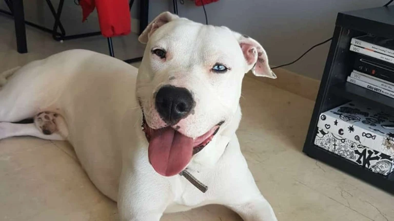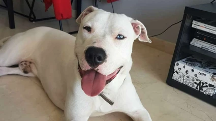 Sin embargo, la vida siempre da oportunidades a todos y también a los animales. Ese es el caso de Anuel, un precioso dogo argentino de color blanco y de impactantes ojos, uno de color azul cielo y otro de color negro. Anuel es sordo y debido a su comportamiento llevaba una vida incomprendida sin que nadie lo entendiera ni se hiciera cargo de él.