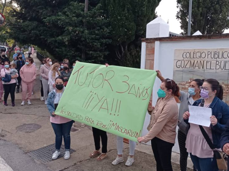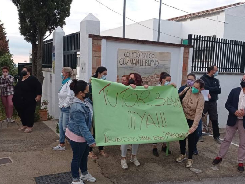 En un colegio de Gaucín, el colegio público Guzmán El Bueno, un grupo de padres se ha concentrado para pedir que le asignen un tutor a sus hijos de tres años. Los alumnos están sin tutor porque el que tenían está ahora desempeñando otras funciones, para que no esté en contacto con los alumnos.