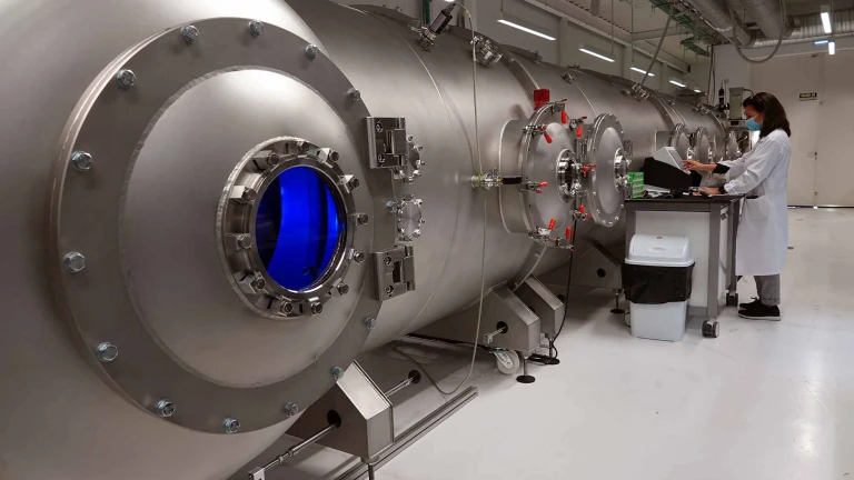 El LaserLab cuenta con una ‘cámara marciana’ de 12 metros de longitud, dos metros de diámetro y casi 20 toneladas de peso capaz de simular la atmósfera de Marte. Se trata de una infraestructura de experimentación única en España y de las más grandes del mundo, a través de la cual la UMA ha participado en la misión ‘MARS 2020’, interpretando algunos datos de los recogidos por el rover, en concreto, la composición química de los materiales, en busca de biofirmas de vida extraterrestre a través del sonido, a partir de la onda de choque que producen los plasmas inducidos por láser.