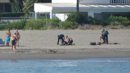 Dos policías nacionales fuera de servicio inmovilizaron en la tarde del miércoles a dos personas así como tres bultos, que parecían ser hachís, en una playa de Estepona (Málaga).