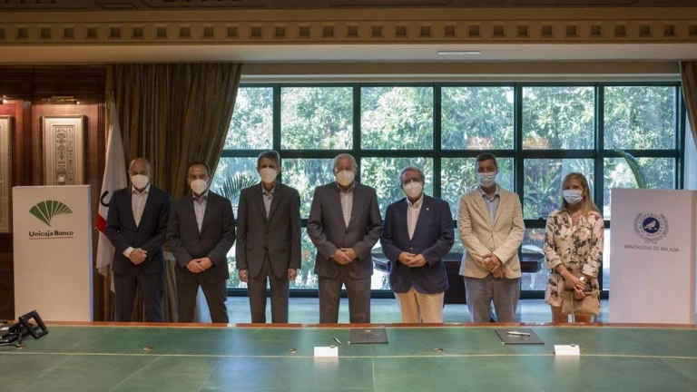 El convenio, firmado por el presidente de Unicaja Banco, Manuel Azuaga, y el rector de la UMA, José Ángel Narváez, responde al compromiso de ambas entidades "con la sociedad y a su interés por aunar esfuerzos en la lucha contra el COVID-19", de modo que la unión de la iniciativa pública y privada permita "intermediar en la transferencia del conocimiento generado por la actividad de investigación, desarrollo e innovación".