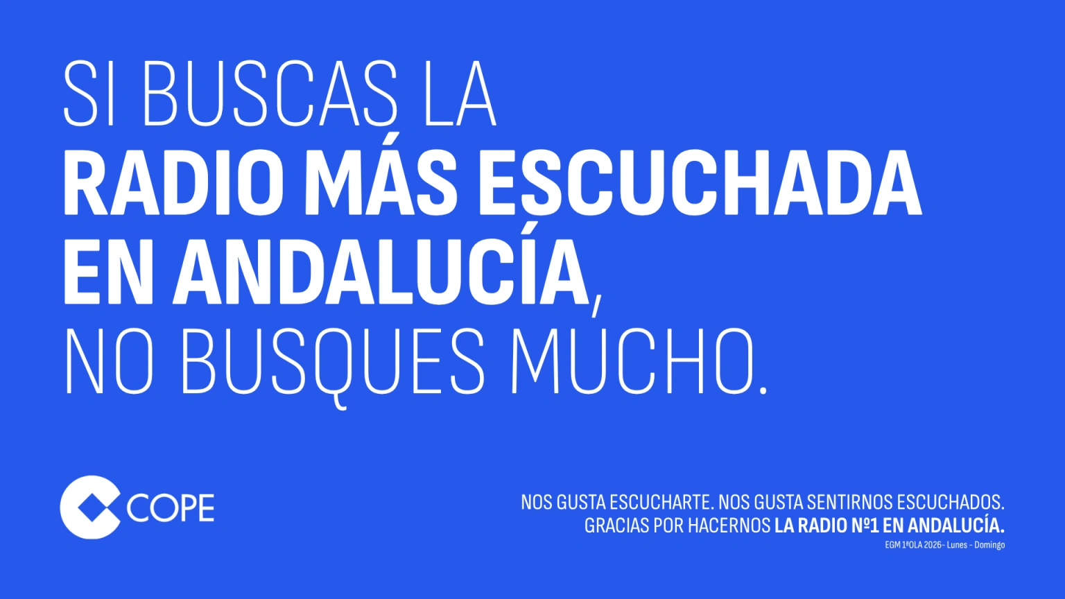 El 15 de abril de 2026 va a quedar para siempre como un día histórico para la Cadena COPE en Andalucía. Según la primera ola del EGM en este 2026, 865 mil oyentes nos siguen a diario en Andalucía. Marcamos una diferencia de 170.000 oyentes con nuestro inmediato competidor, la cadena SER, que se queda con 696.000 oyentes y nos siguen a partir de ahí Onda Cero con 490.000, Canal Sur radio con 276.000 y RNE con 133.000.