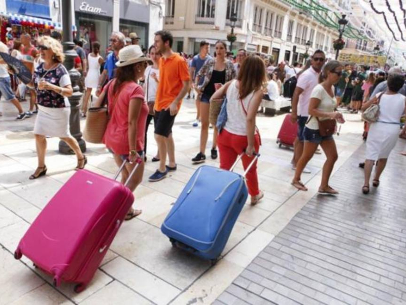 Turistas en Málaga por calle Larios
