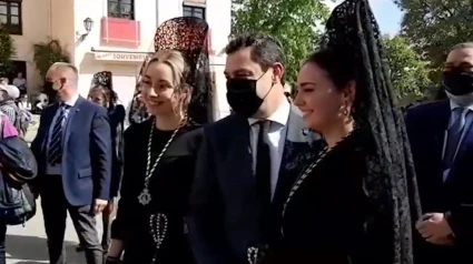 El presidente de la Junta de Andalucía, Juanma Moreno, hoy en la Semana Santa de Granada