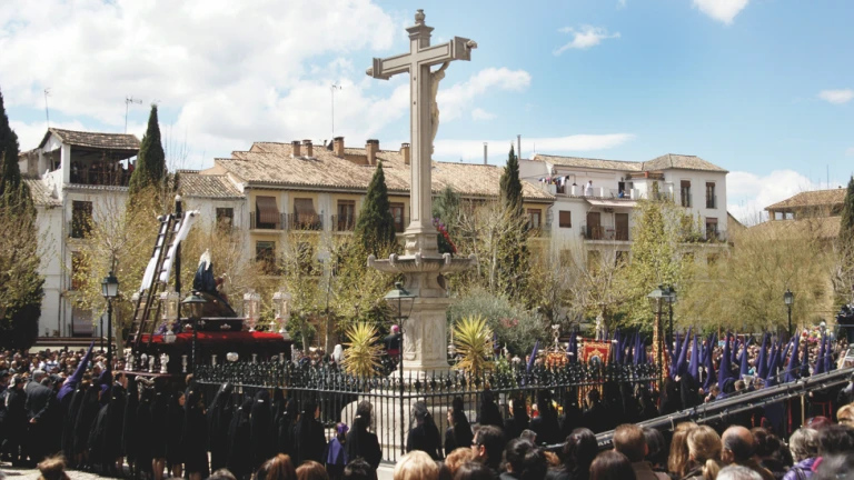 En una Semana Santa que tiene en los contrastes una de las notas predominantes, su banda sonora también ofrece este carácter. En ella aparecen un tambor ronco y destemplado acompañando a la Cruz de Guía de la Cofradía del Silencio o las palmas y cantes flamencos de los gitanos del Sacromonte, al paso de Cristo del Consuelo. En gran medida, muchos de estos sonidos se configuran a lo largo del siglo XX, pero todavía perviven algunos que se escuchan desde hace varias centurias, como las trompetas lastimeras de las chías, singulares personajes que según los historiadores, heredaron las cofradías granadinas del Tribunal de la Inquisición. Sus notas, moldeadas en tonos fúnebres, se entremezclan con los gritos de la chiquillería. Un lugar extraordinario ocupan las saetas, que afloran al paso de las estaciones de penitencia y en las que muchas veces es fácil adivinar el tono peculiar de los cantaores granadinos. También es centenario el característico repique de la campana de la Torre de la Vela, que ya se oía cuando las primeras procesiones recorrían la ciudadela palatina de la Alhambra.