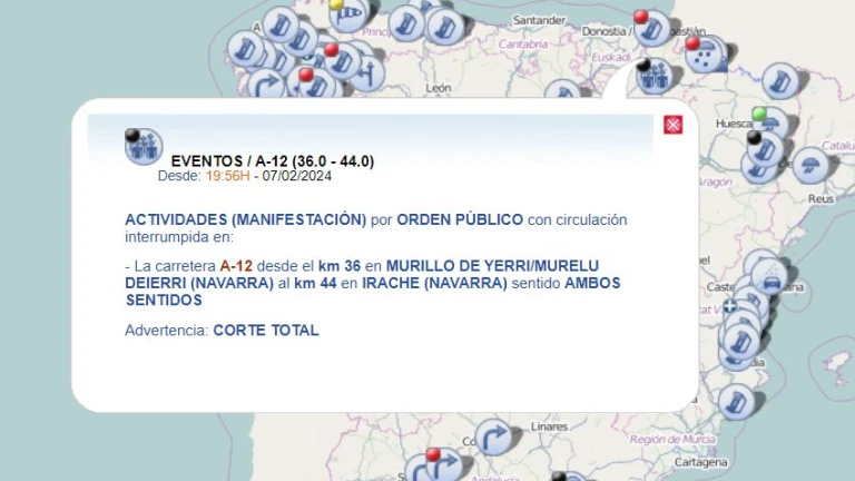 El mapa en el que se puede consultar si hay tractores y retenciones en un trayecto por carretera
