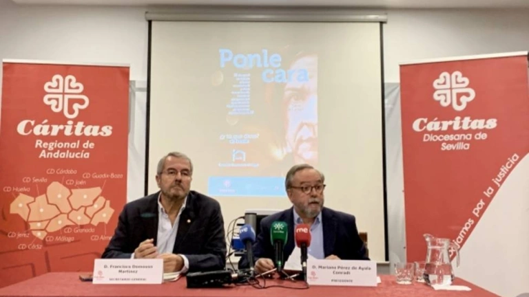 Con motivo del Día de las Personas Sin Hogar, que se celebra el próximo 27 de octubre, Cáritas Regional de Andalucía y Cáritas Diocesana de Sevilla han presentado esta mañana en rueda de prensa la Campaña ¿Y tú qué dices? Di basta. NADIE SIN HOGAR. Una campaña que este año llama a ponerle cara a una situación que en España afecta a más de 30.000 personas con rostro, nombre y apellidos y que sufren a diario la vulneración de sus derechos y la exclusión social.