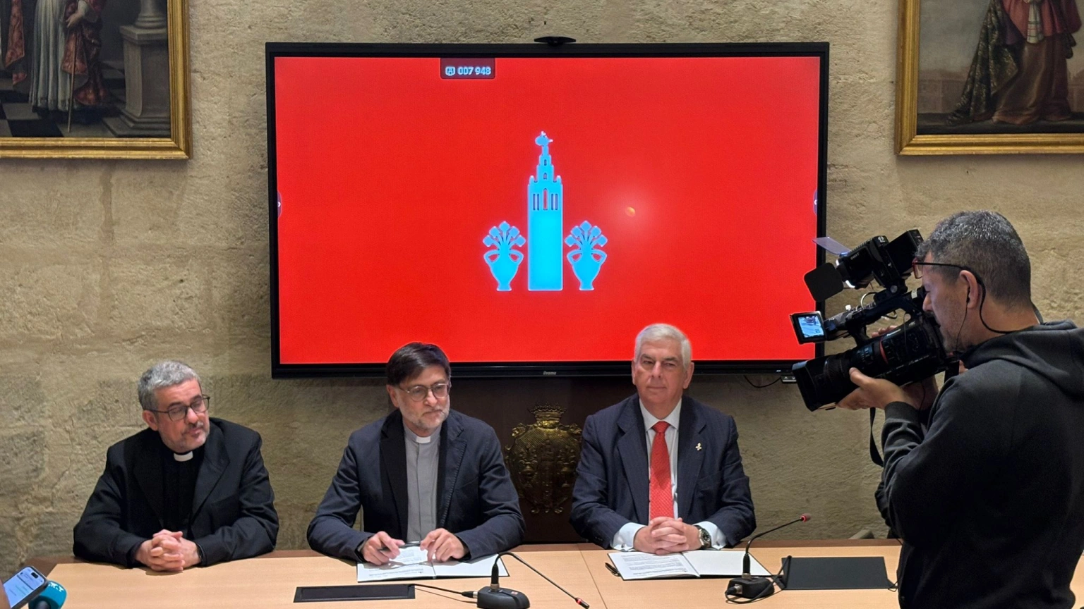 El Cabildo Catedral de Sevilla ha encargado a la Real Fábrica de Tapices la confección de una gran alfombra para el Altar Mayor del templo. El acuerdo ha sido formalizado este martes 28 de abril con la firma de un contrato entre el deán de la Catedral, Francisco José Ortiz Bernal, y el director general de la Real Fábrica de Tapices, Alejandro Klecker de Elizalde.