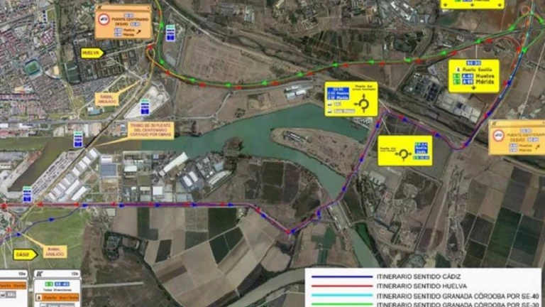Para “asegurar la fluidez del tráfico” se habilitan itinerarios alternativos «debidamente señalizados”, apuntaba el Ministerio en una nota de prensa. Así, en sentido Huelva, el tráfico procedente de la A-4 se desvía en la salida 549 hacia la carretera de la esclusa (SE-31), continuando por la misma hasta la rotonda de la calle José Delgado Brackenbury, desde donde se puede acceder a la SE-30.
