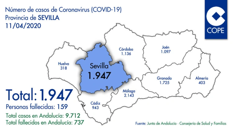 Nuevos datos de contagios por coronavirus en la provincia de Sevilla del 11/04/2020