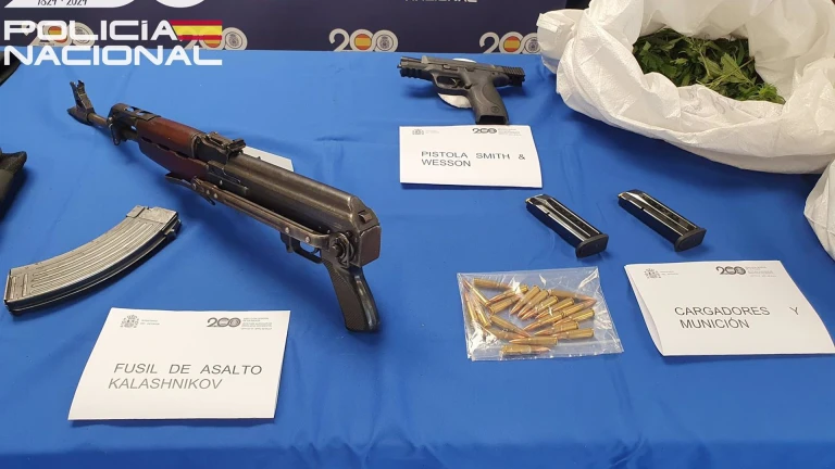 La operación se salda con el desmantelamiento de cinco pisos dedicados al cultivo y un sexto habilitado como un "auténtico búnker". En los registros efectuados, los agentes han intervenido un fusil de asalto Kalashnikov AK-47, una pistola, 49 cartuchos de fusil de guerra y 29 cartuchos de arma corta