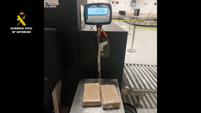 La Guardia Civil ha detenido en el aeropuerto de San Pablo de Sevilla a un pasajero como presunto autor de un delito de tráfico de drogas tras intervenirle 2,5 kilogramos de cocaína ocultos en su equipaje. La sustancia, distribuida en dos paquetes y oculta en un doble fondo, está valorada en unos 120.000 euros en el mercado ilícito.