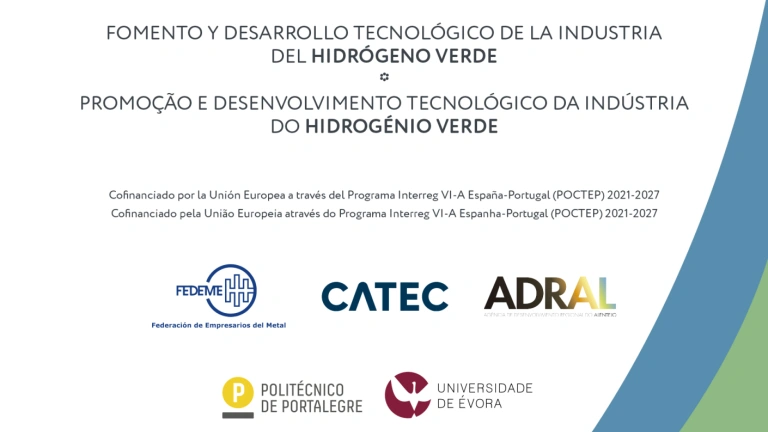 Un total de seis socios pertenecientes a las regiones del Alentejo (Portugal) y Andalucía forman parte del consorcio constituido en noviembre de 2023 para la ejecución de las diversas actividades que se han desarrollado en el marco de este proyecto que ya avanza hacia su fase final. En concreto, el Centro Avanzado de Tecnologías Aeroespaciales-CATEC, Adral, Instituto Politécnico de Portalegre, Universidad de Évora, Fundación Nao Victoria y FEDEME, como entidad líder, han sido las entidades encargadas de dar vida a este proyecto enfocado a desarrollar la cadena de valor del hidrógeno verde en esta zona transfronteriza, promocionando y divulgando las virtudes y capacidades de este vector energético como industria del futuro.
