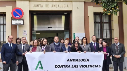El delegado del Gobierno de la Junta de Andalucía en Sevilla, Ricardo Sánchez, junto a la directora del Instituto Andaluz de la Mujer (IAM), Olga Carrión, y los delegados territoriales de las diversas consejerías, ha mantenido la mañana de este martes un minuto de silencio por la última mujer víctima de violencia machista, una vecina de la localidad sevillana de Estepa, de 46 años de edad y con dos hijos menores de edad, asesinada por su pareja, quien tras disparar contra ella con arma de fuego, se quitaba la vida.