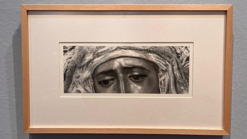 La originalidad también encuentra su espacio en la muestra, como demuestra su retrato de la Virgen de la Amargura. En un ejercicio de síntesis, González se aleja del realismo detallado para concentrarse en lo esencial: la mirada. La obra, que representa únicamente los ojos de la imagen, es una prueba de que con muy poco se puede transmitir mucho. “Los ojos de la amargura, pues tienen una expresividad y una fuerza increíble”, afirma el artista sobre una de las miradas más sobrecogedoras de la Semana Santa.