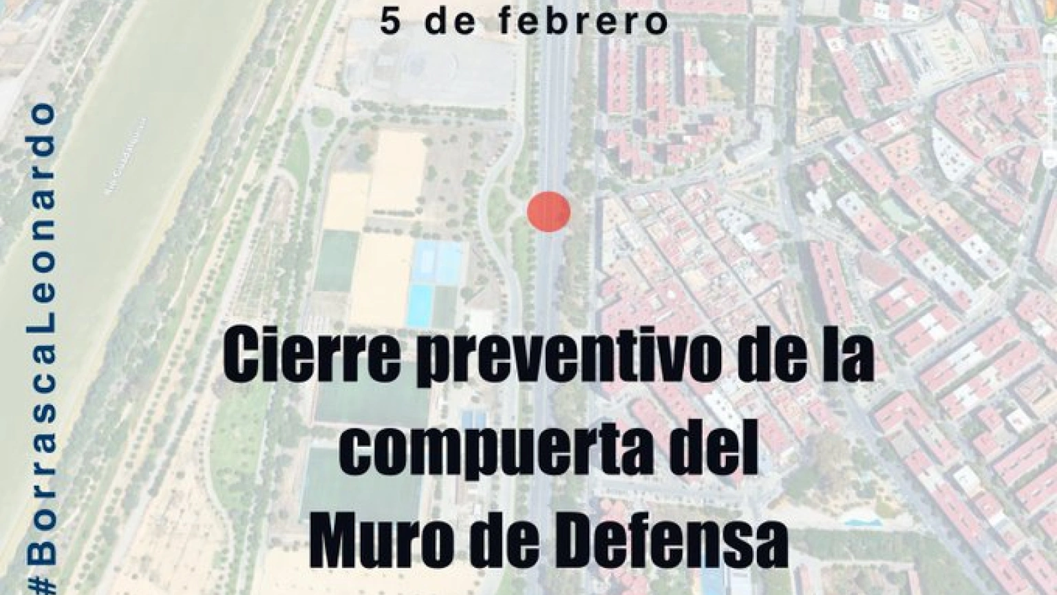 El Ayuntamiento de Sevilla ha activado la mañana de este lunes el procedimiento de cierre de la compuerta de seguridad del Muro de Defensa como medida preventiva ante una eventual crecida del río Guadalquivir. La decisión se ha tomado por la borrasca Leonardo para anticiparse a cualquier riesgo de inundación.