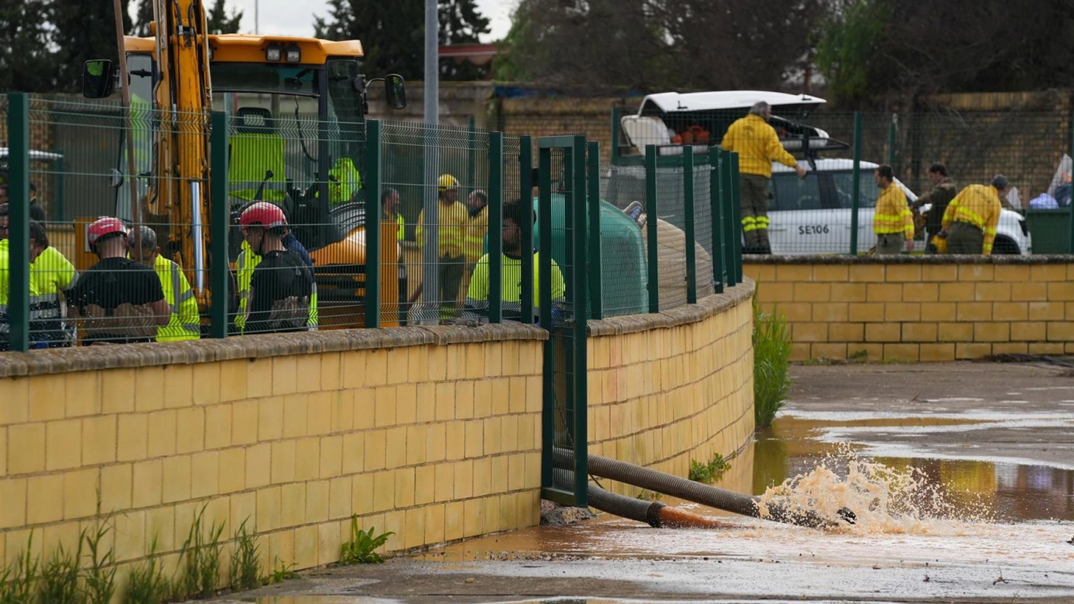 La UME continúa labores en zonas anegadas de El Palmar de Troya (Sevilla).