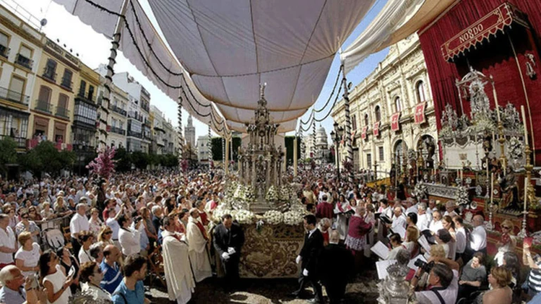 Este jueves 16 de junio es fiesta mayor en Sevilla y además será un día especial para los sevillanos porque por fin la procesión del Corpus recupera la normalidad y el formato tradicional tras la pandemia. Por ello, a pesar del calor que se espera que haga por culpa de esta tórrida ola que se está alargando, se esepra que la afluencia sea masiva en las calle del centro por las que discurre el cortejo.