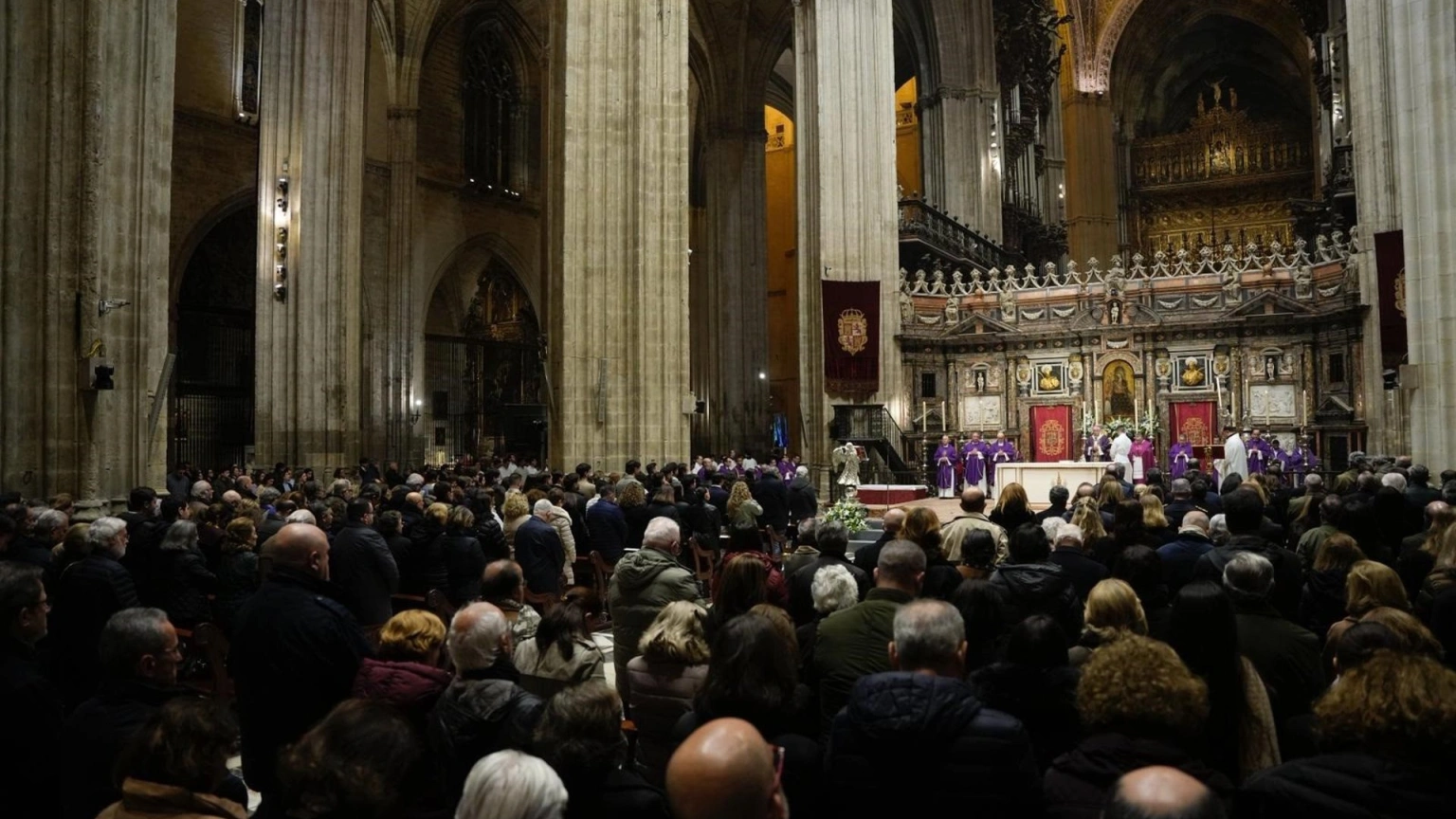 La Catedral de Sevilla ha acogido este miércoles una misa funeral en memoria de las víctimas del grave accidente ferroviario ocurrido el pasado 18 de enero en Adamuz (Córdoba), tras el descarrilamiento de dos trenes de alta velocidad, que se saldó con 45 fallecidos, así como por el maquinista Fernando Huerta, joven sevillano que perdió la vida en el siniestro de Gelida (Barcelona) tres días más tarde.