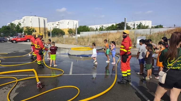 Durante la mañana, los menores han podido disfrutar de una pista de obstáculos militar, dos tirolinas y juegos refrescantes gracias a los vehículos de lucha contra incendios forestales de la UME, que han contribuido a aliviar las altas temperaturas.