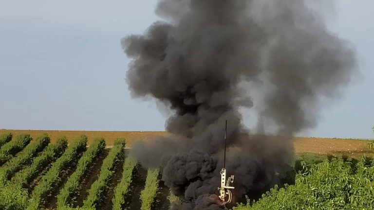 Un sondeo buscando agua en un campo de almendros perforó una bolsa de gas causando una explosión con dos heridos y desde entonces permanece en llamas