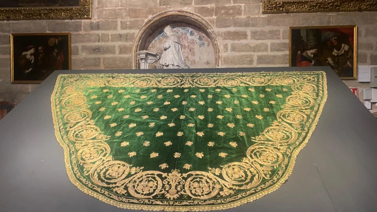 El manto verde de terciopelo de seda con bordados en oro ha sido sometido a un trabajo minucioso de restauración durante quince meses