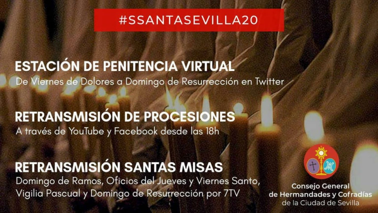 Para ello, y gracias a 7TV Sevilla, el Consejo de Hermandades compartirá el link de la televisión sevillana a través de sus perfiles oficiales de Twitter y Facebook, para hacernos partícipes a todos de dichas celebraciones religiosas.