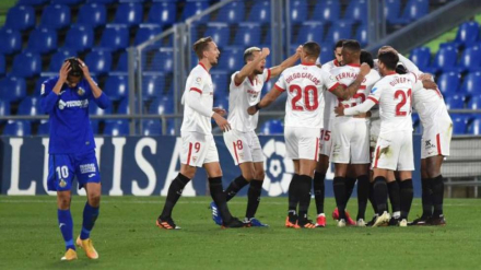 El argentino firmó dos goles en su debut. Lopetegui rearmó el once con las obligadas bajas de Bono, Suso, Ocampos, Oliver y Rakitic