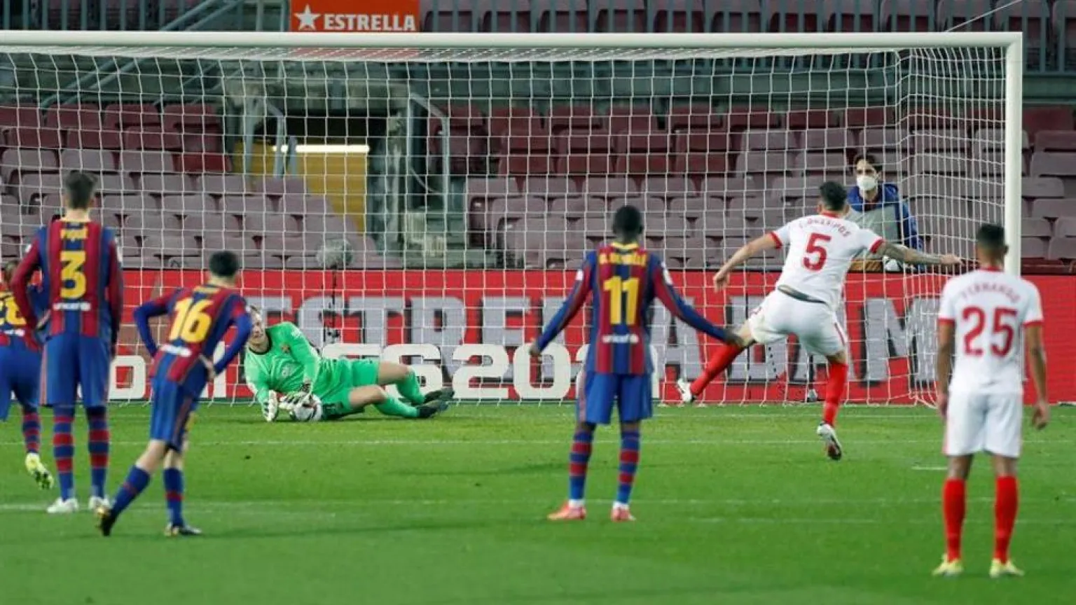 Se acabó el sueño de la Copa del Rey para el Sevilla esta temporada. El buen resultado de la ida quedó evaporado en el encuentro de vuelta, donde el equipo de Lopetegui se limitó a defender, no atacó y no tuvo ocasiones, excepto el penalti de Ocampos, que no transformó. Renunciar al ataque le costó muy caro, ya que estuvo a merced del Barça todo el encuentro. Sin embargo, el tanto en el último segundo de Piqué fue un palo tremendo a las aspiraciones del Sevilla. Un tanto precedido por un error infantil y poco inteligente de En-Nesyri, que perdió una pelota al querer hacer un cambio de orientación cuando estaba ya en el añadido y, por ejemplo, pudo haber buscado el córner. Ahí estuvo el partido, ya que tras ese error, en la contra, Fernando fue expulsado con una doble amarilla. Más achacable este error que el fallo de una pena máxima.