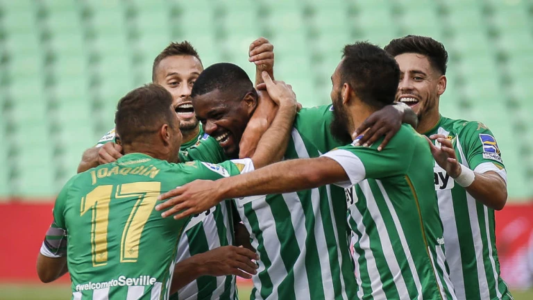 Los jugadores verdiblancos celebrando un tanto de William Carvalho
