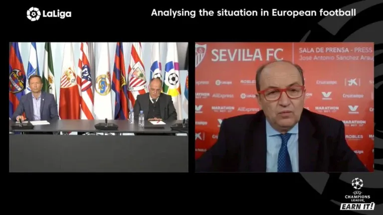 Javier Tebas, presidente la Liga, ha aparecido hoy públicamente acompañado de varios presidentes de la competición española para criticar la amenaza que ha supuesto la organización de la Superliga. Esa esa rueda de prensa ha estado el presidente José Castro, quien ha criticado con dureza la filosofía de la competición que ha querido lanzar Florentino Pérez: "El fútbol es de todos, sobre todo de los aficionados que lo amamos y que llega a todos los rincones del planeta. Todos tienen la oportunidad de mejorar y así debe seguir. No podemos destruir rivalidades ni la pasión de los aficionados por sus colores. El Sevilla lleva a gala su sevillanía y estamos orgullosos de llevar el nombre de nuestra ciudad por toda Europa, algo que llevamos haciendo en el siglo XXI de manera constante. Nuestro buen hacer para la ciudad, somos embajadores del Sevilla en Europa y queremos seguir siéndolo. Nuestro lema, "nunca te rindas", no encaja en una competición cerrada donde nos tengan que invitar. El poderoso Sevilla de hoy se se ha ganado su prestigio en el campo gracias a su buena gestión deportiva y económica y entendemos que así debe seguir".