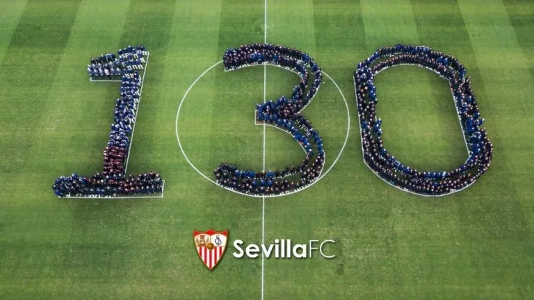 El Sevilla ha celebrado sus 130 años de una forma original. El club ha reunido a todos los equipos que militan en la actualidad en la entidad y han posado en el césped del estadio Jesús Navas configurando el número 130. A continuación, se celebró una cena especial en el Cartuja Center.