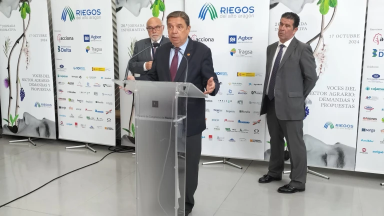 En su intervención, el ministro ha dicho que “el regadío eficiente es una de las señas de actuación del Gobierno de España”, y se ha apoyado en datos para sostener dicha afirmación. Así, ha indicado que “ha habido 2.400 millones de euros de inversión en el período 2021-2027, de los que 411 en 21 proyectos están situados en Aragón, y en concreto, en Riegos del Alto Aragón hay 13 proyectos por un total de 171 millones de euros”.