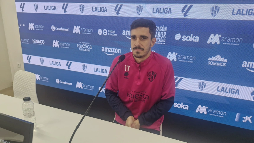 El lateral del Huesca hace autocrítica sobre su irregularidad y avisa del peligro del Mirandés, un 'colista engañoso' al que ve 'jugando muy bien'