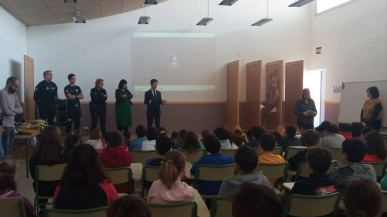 En estas charlas también se explica a los escolares la función de la Policía Local y del Servicio de Prevención, Extinción de Incendios y Salvamento del Ayuntamiento de Huesca. En el encuentro de este martes por la mañana han participado cerca de 150 niños y niñas de tercero y quinto de Educación Primaria.