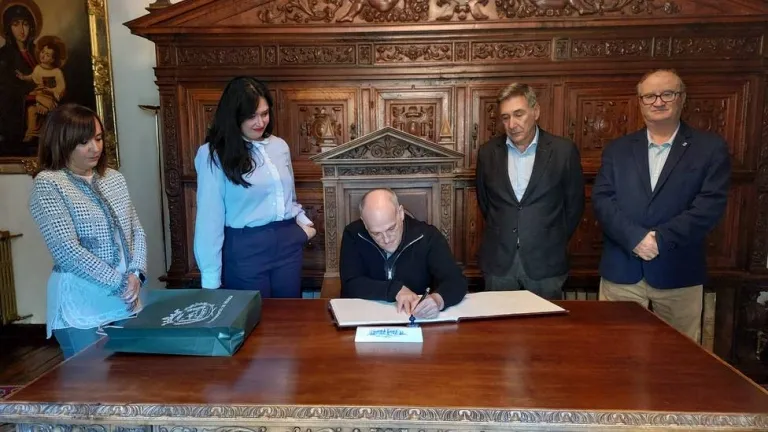 Tras la reunión, Tebas ha firmado en el libro de honor del ayuntamiento y se le ha obsequiado con un ejemplar del libro Huesca. Fundación, excelencias, grandezas y cosas memorables de la antiquísima ciudad, de Francisco Diego de Aynsa y de Iriarte.