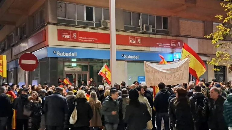 También concentraciones en Huesca contra la amnistia acordada por Pedro Sanchez con los partidos independentistas. Anoche cientos de oscenese se concentraban a las puertas de la sede del psoe en una llamada realizada a traves de redes sociales como en otros puntos de nuestro pais. Por otro lado, el partido popular también convoca el domingo a las 12 en la plaza de San Antonio como protesta por esas negociaciones.