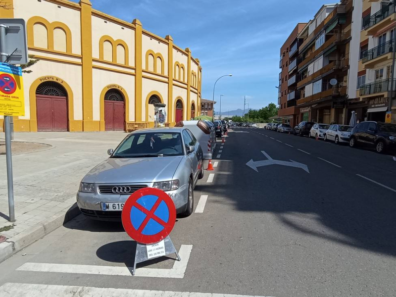 En los exteriores de la plaza de toros ya se han colocado la señalización que prohibe el estacionamiento en la zona desde la tarde de mañana viernes