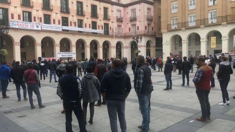 Un centenar de ganaderos han arropado la concentración convocada esta mañana por las distintas organizaciones agrarias aragonesas en la plaza López Allué
