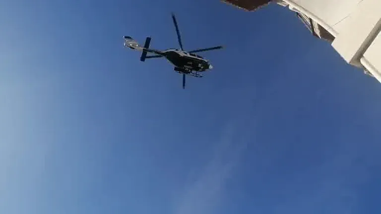 La plaza López Allúe de la capital altoaragonesa se ha convertido esta mañana en una zona de montaña de difÍcil acceso, a la que ha tenido que acceder el helicóptero medicalizado de la Guardia Civil para rescatar a un herido y trasladarlo al hospital universitario San Jorge de Huesca.