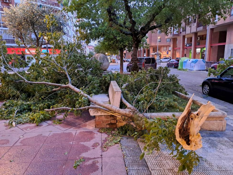 También en la Ronda de Monteragón se precipitó un árbol que invadió parte de la calzada. La alcaldesa y varios concejales recorrieron las zonas afectadas.