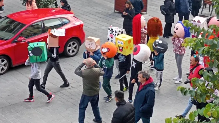 Los niños del Sancho Ramírez desfilan por San Martín con sus propios cabezudos