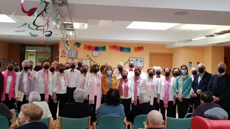 La música ha inundado en la mañana de hoy la residencia Sagrada Familia de Huesca con motivo de la celebración de un bonito acto navideño en el que los protagonistas han sido los usuarios del centro y los componentes del coro “Voces de la alegría” y del grupo de baile en línea del Hogar de Mayores de Huesca. Una vez más, ambos centros del Instituto Aragonés de Servicios Sociales (IASS) se unen para llevar a cabo una actividad cultural.